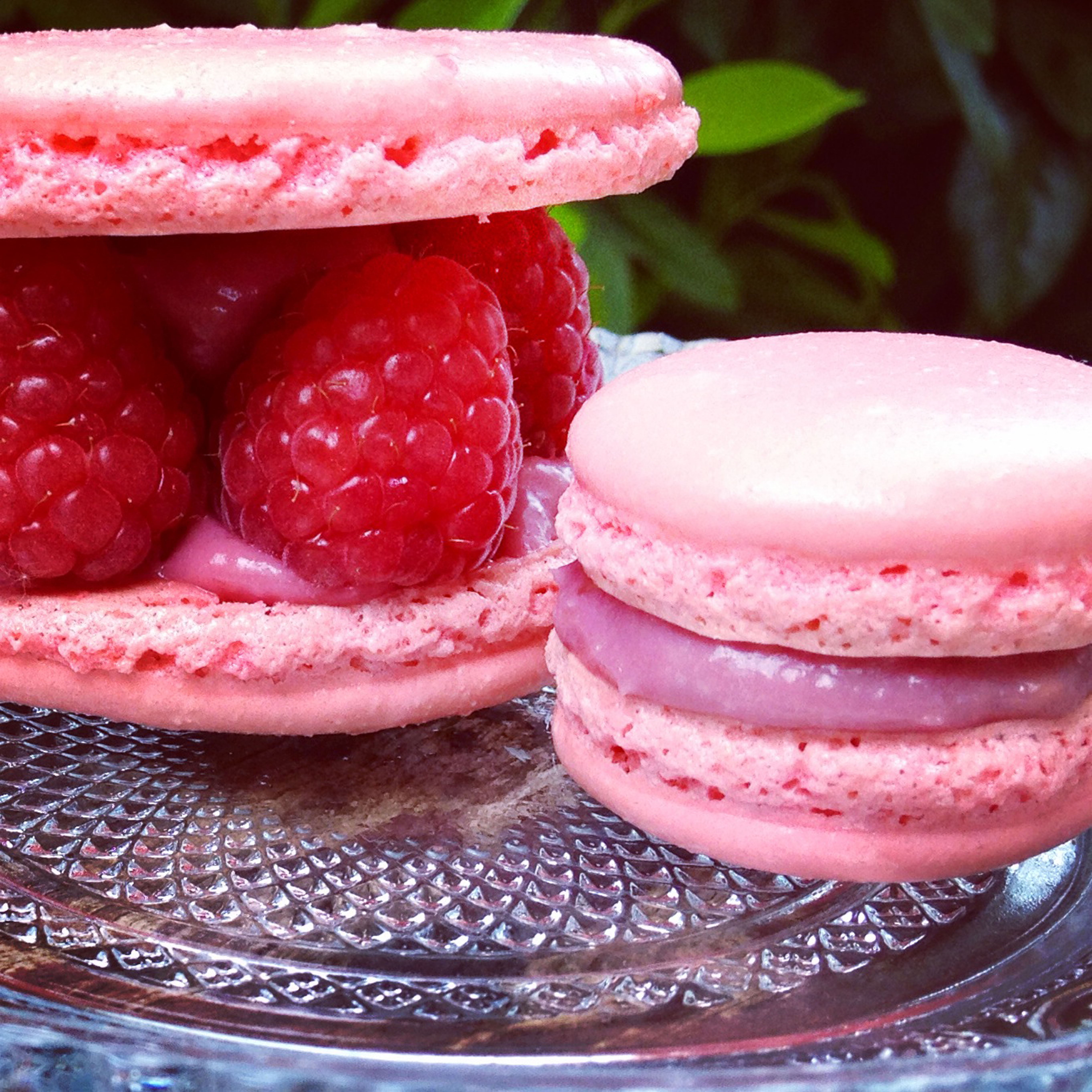 Sur demande de mon beau-frère, je suis partie sur une recette fruitée, aux framboises. Jusqu’à présent, j’ai toujours des petits soucis avec les ganaches aux fruits, qui je trouve, ramollissent énormément les macarons. C’est pourquoi, je favorise les ganaches aux fruits/chocolat. Alors certes, c’est plus gourmand, mais le chocolat permet d’obtenir une ganache bien ferme, facile à étaler, et donne aux macarons une texture imbattable. Je sais pas comment vous expliquer, il faut goûter hein !