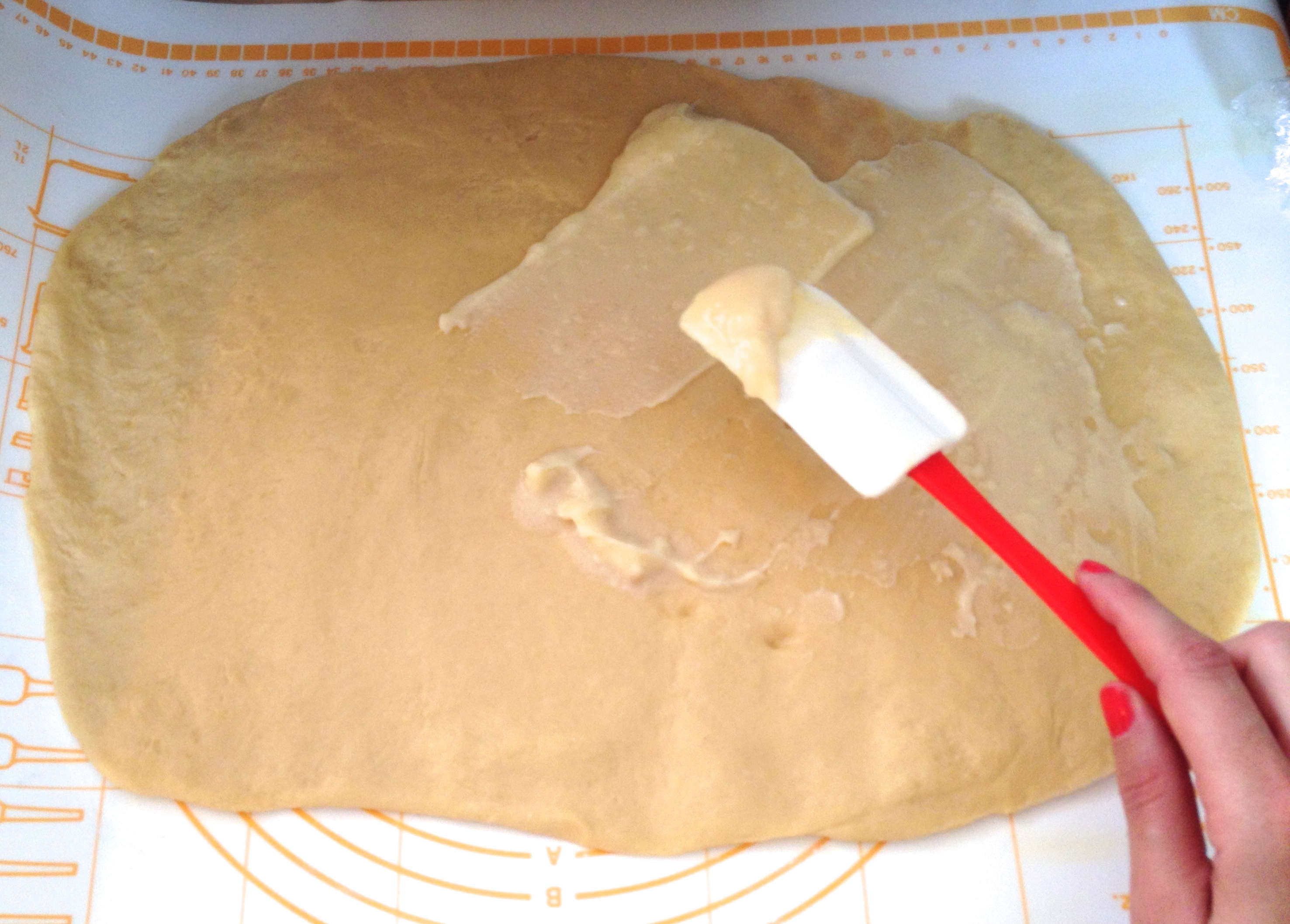 Lorsque la pâte à bien poussé, étalez-la sous forme de rectangle.