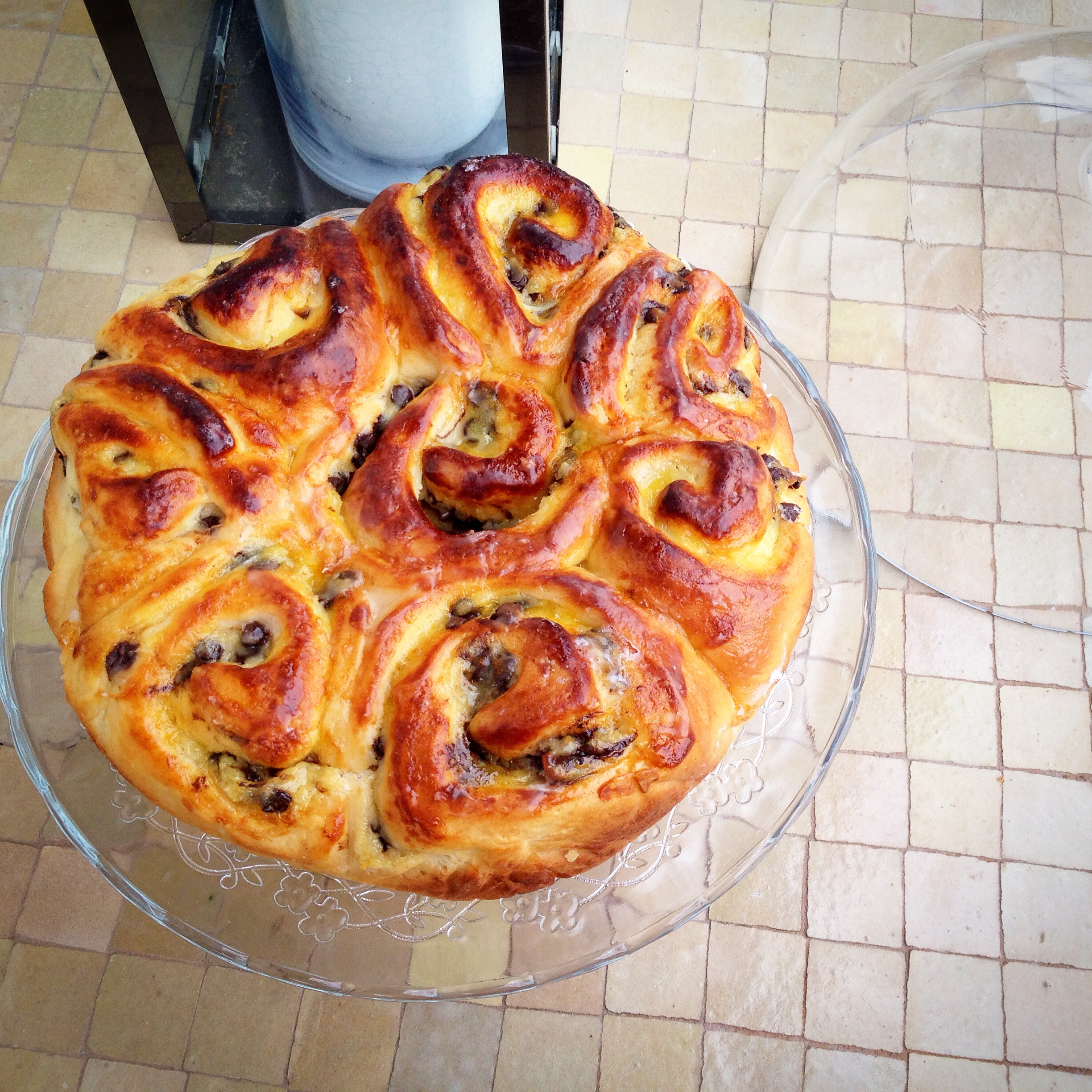 En l’honneur de la fête Nationale Suisse j’ai décidé de faire un Chinois… Brioche roulée en forme d’escargots, fourrée à la crème pâtissière et aux pépites de chocolat.