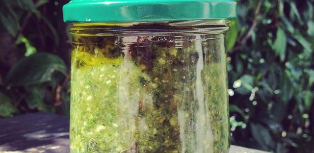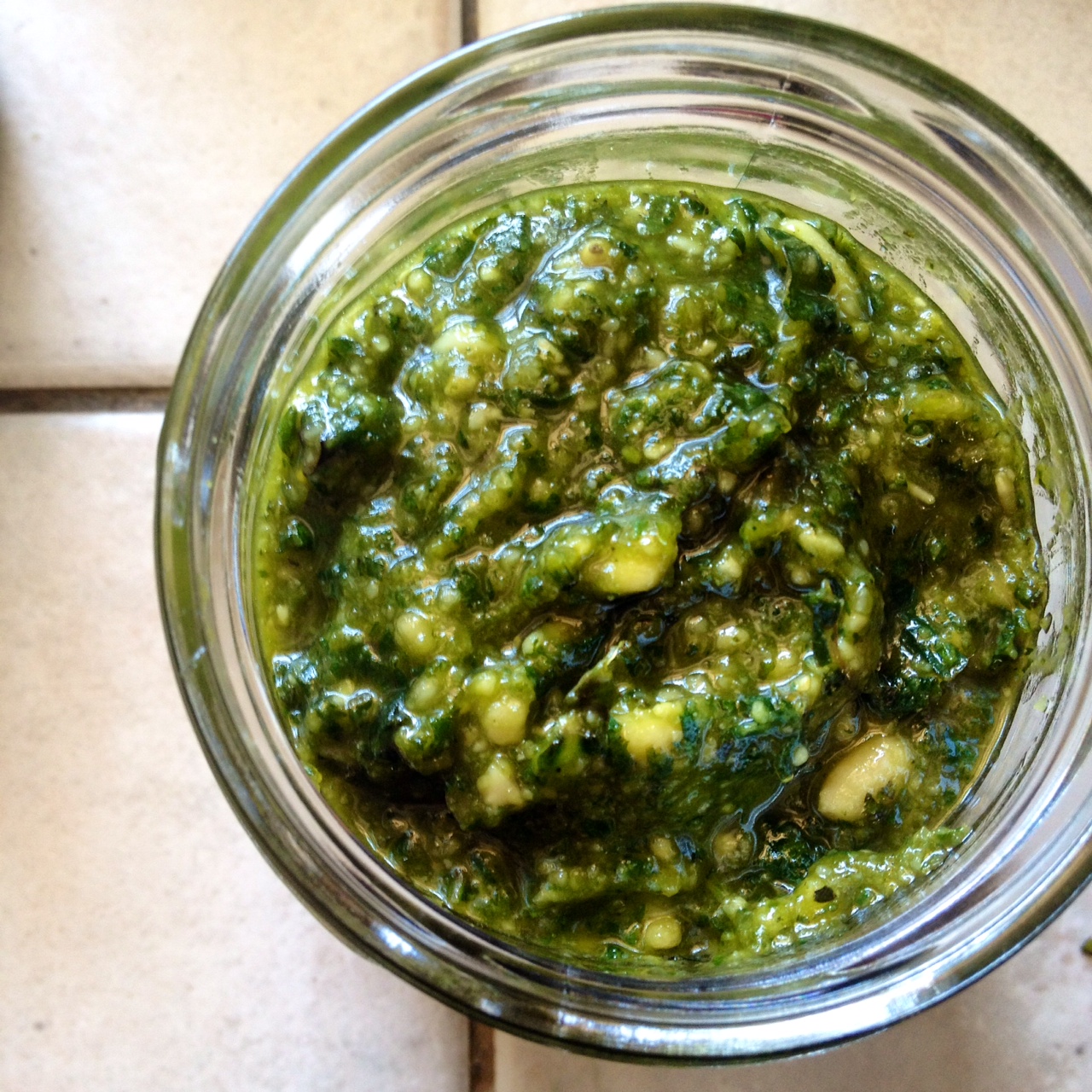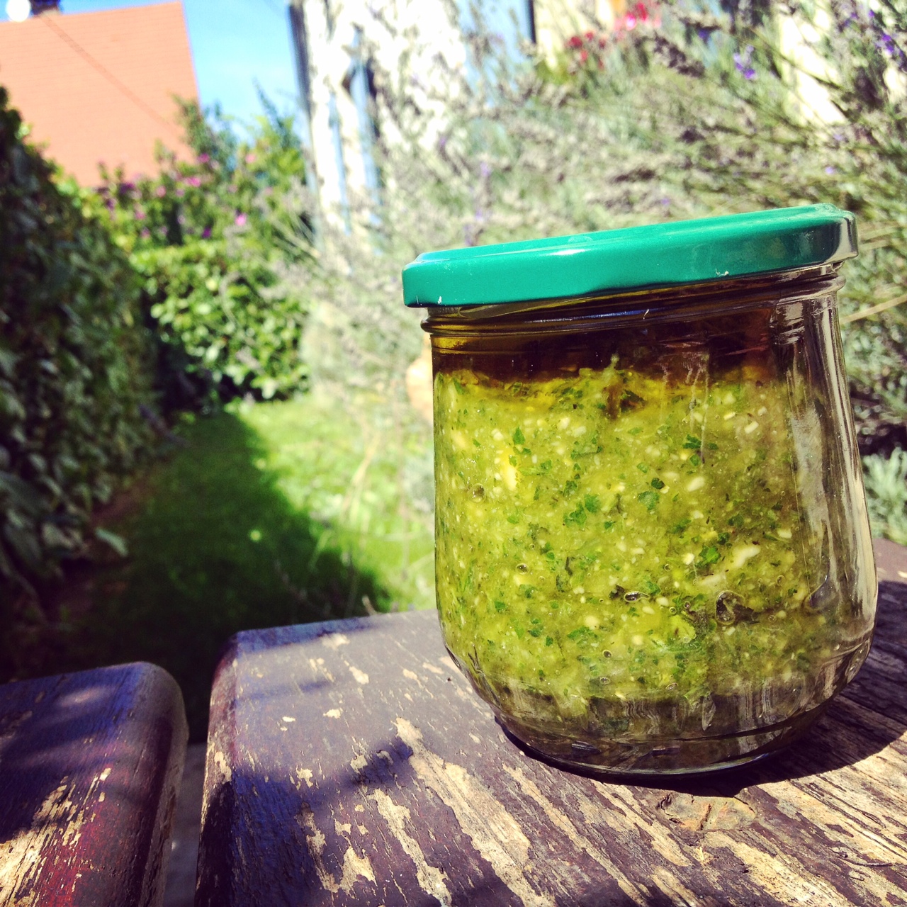 J’ai donc essayé de remettre tout ça dans l’ordre pour vous donner envie de préparer votre propre sauce au pesto, saine et efficace, facile et délicieuse, à manger à la petite cuillère et vu la dose d’huile d’olive, qui vous fera vivre, très, très longtemps :)