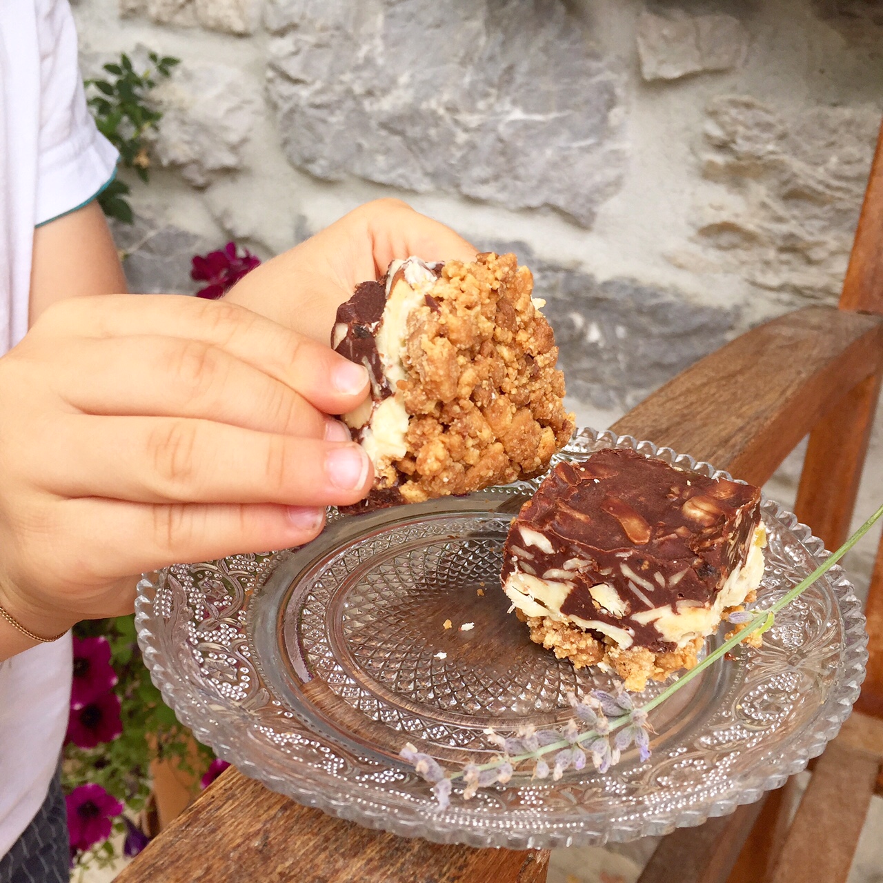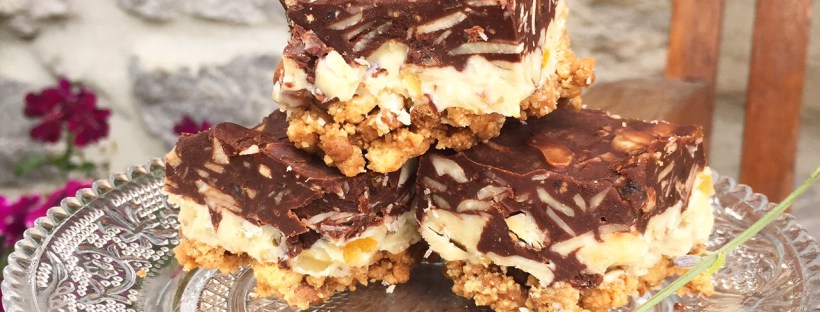 DONC ! L’heure des régimes est close, va falloir se remplumer si tu veux tenir l’hiver mon p’tit. Et pour commencer le marathon, j’ai LA recette idéale, les carrés gourmands aux fruits secs et aux deux chocolats ! Et tu sais quoi ? Sans cuisson ou presque. Trop facile.