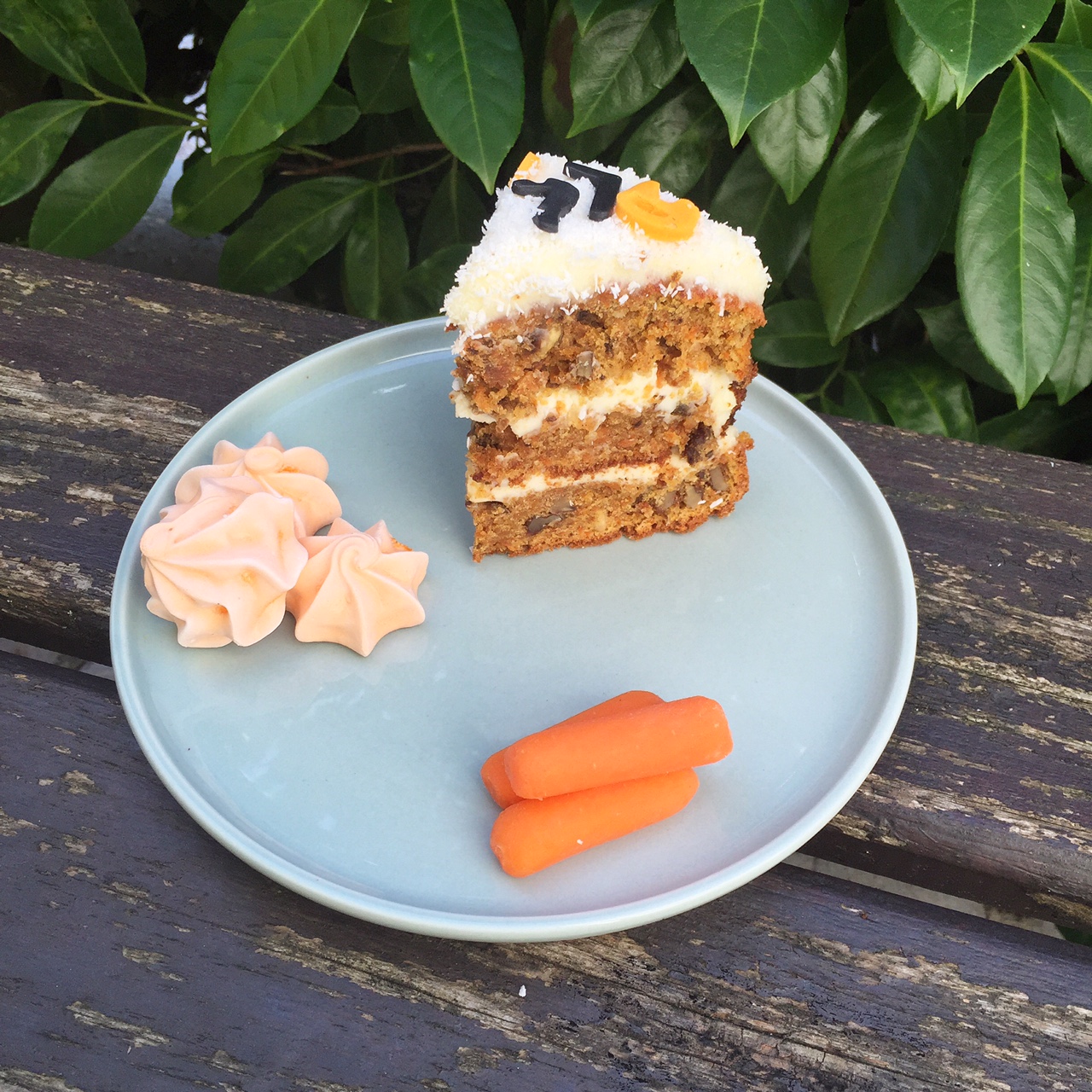 Montage : Une fois le gâteau refroidi, coupez-le en deux ou en trois dans l’épaisseur, étalez une bonne couche de cream cheese, recouvrir avec la deuxième partie du gâteau et étalez le reste de cream cheese.