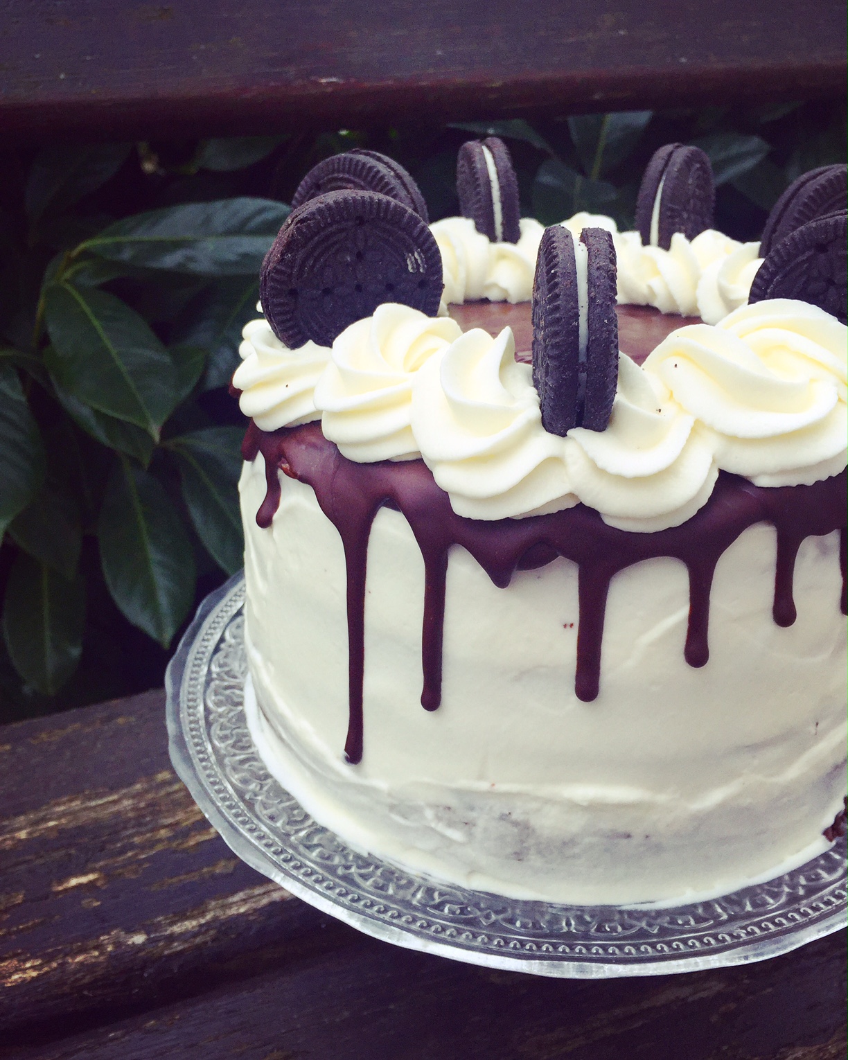 Alors je me suis dit OH RESSAISI TOI ! Ce type-là, il veut un truc qui claque, crémeux et bien costaud. Il aime le Dr Pepper, les carambars au coca et le football américain alors laisse tomber les fruits exotiques deux minutes et balance lui un LAYER CAKE AUX OREO dont il ne se remettra pas de sitôt !
