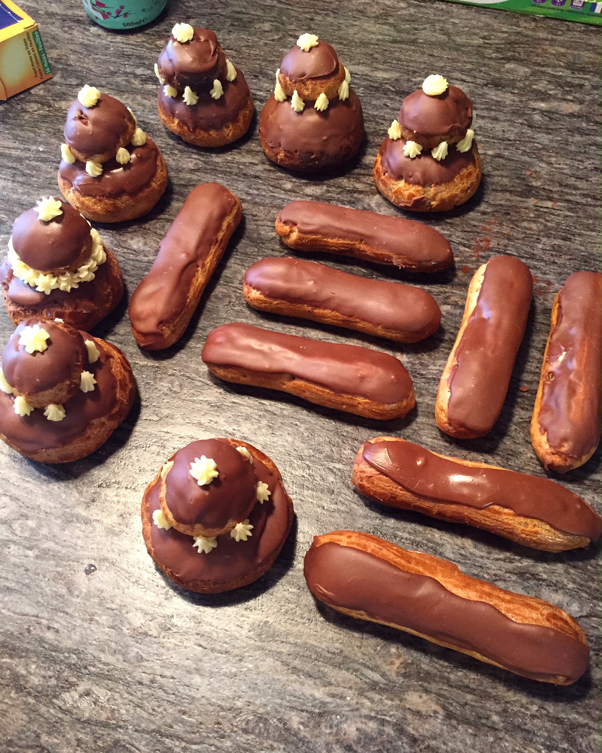 Il reste les salambos à garnir et caraméliser, et la finition de la charlotte. Si tu suis bien sûr, sinon tu es perdu.