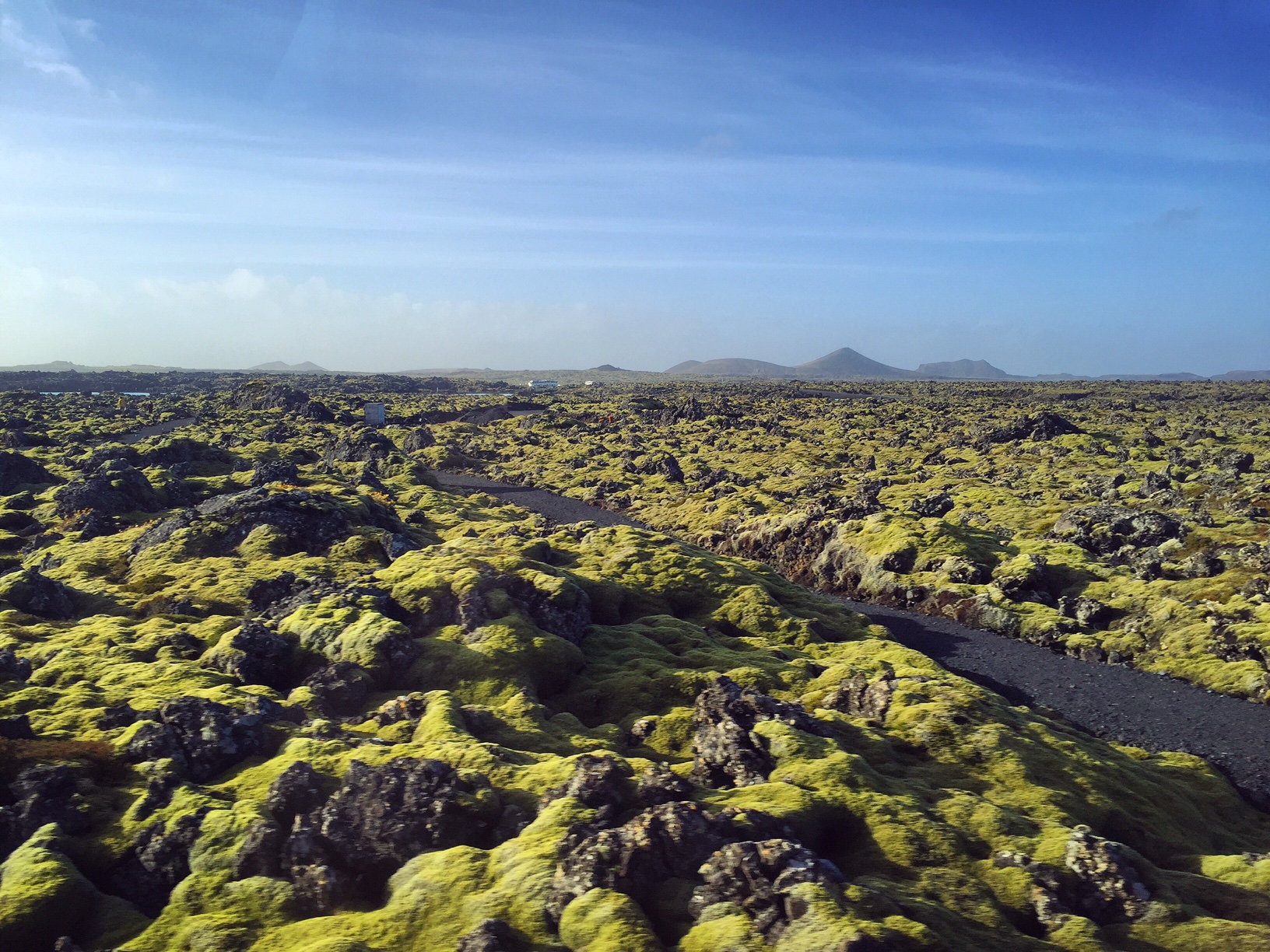 Parfois je suis organisée, alors comme nous avions choisi de repartir le samedi en fin de journée, nous en avons profité pour aller au Blue Lagoon. Il faut absolument réserver (comme beaucoup de choses ici, il faut s’y prendre à l’avance, les touristes sont très nombreux). L’idéal est de s’y rendre avant d’aller prendre l’avion, car ce lieu magique se trouve sur la route et ils sont très bien organisés (pour une fois…) avec consigne pour valise et bus direction l’aéroport toute les heures. Pour y aller, une seule route au milieu de rien, le paysage est lunaire et particulièrement incroyable. Des volcans au loin, de la mousse, des cailloux, pas d’animaux, le calme, le vent, les trolls. Un avant goût de ce que doit donner tout le reste de cette île.