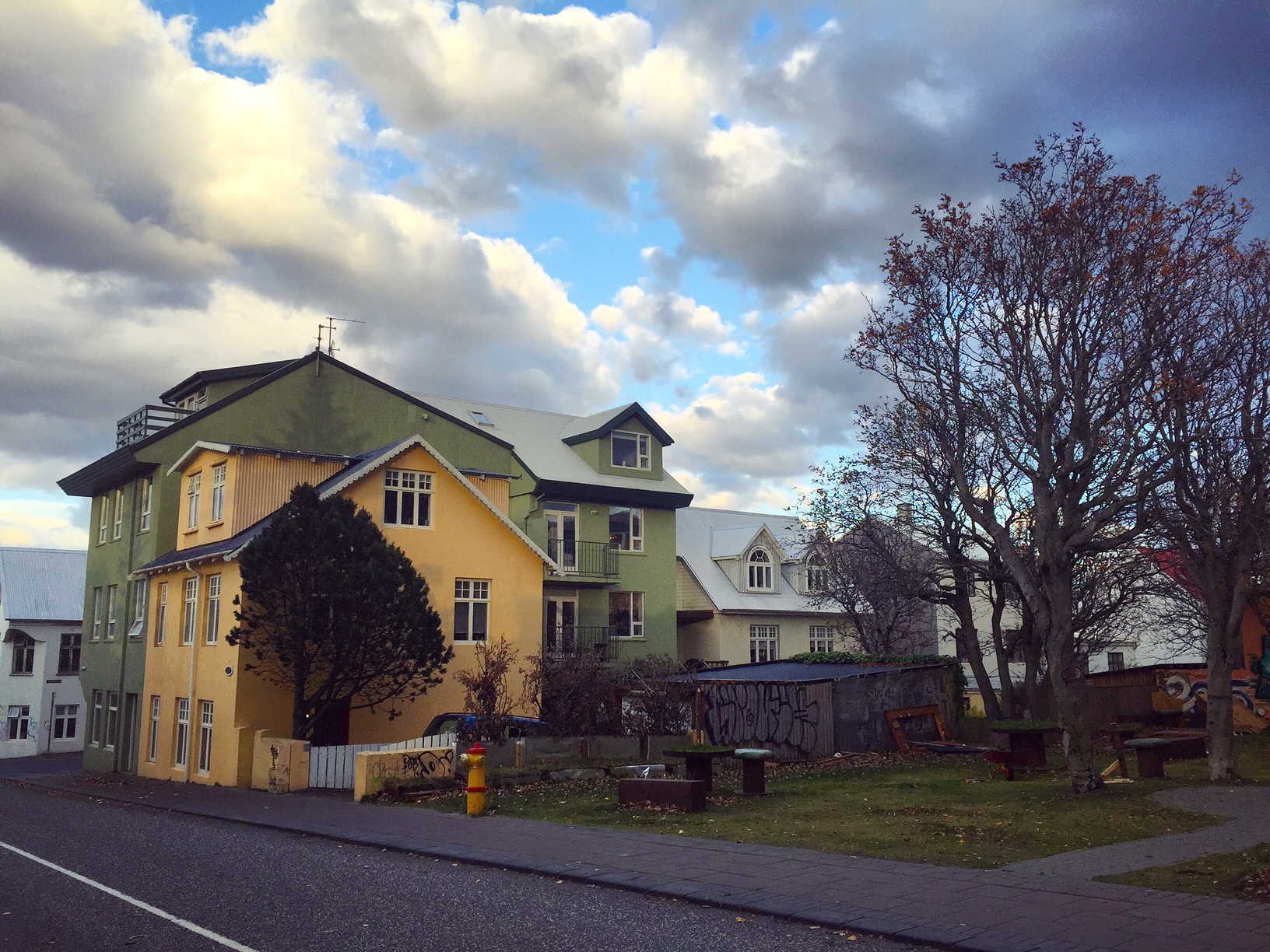Malgré le peu de temps sur place, j’ai eu l’occasion d’aller faire un tour dans la charmante petite ville de Reykjavik, capitale de l’Islande. Quelques ruelles bordées de maisons en taules colorées et un port constituent principalement le centre ville. Beaucoup de charme, de bars, de magasins de pulls en laine, de petites lumières dans les arbres et de couleur ! Mais super bizarre de se dire que c’est la plus grande ville du pays (voire la seule ville), qu’on se trouve au milieu de l’océan et que seulement 323 000 personnes vivent ici. Dans le pays hein, pas la ville. Soit moins qu’à Lyon… Amazing !