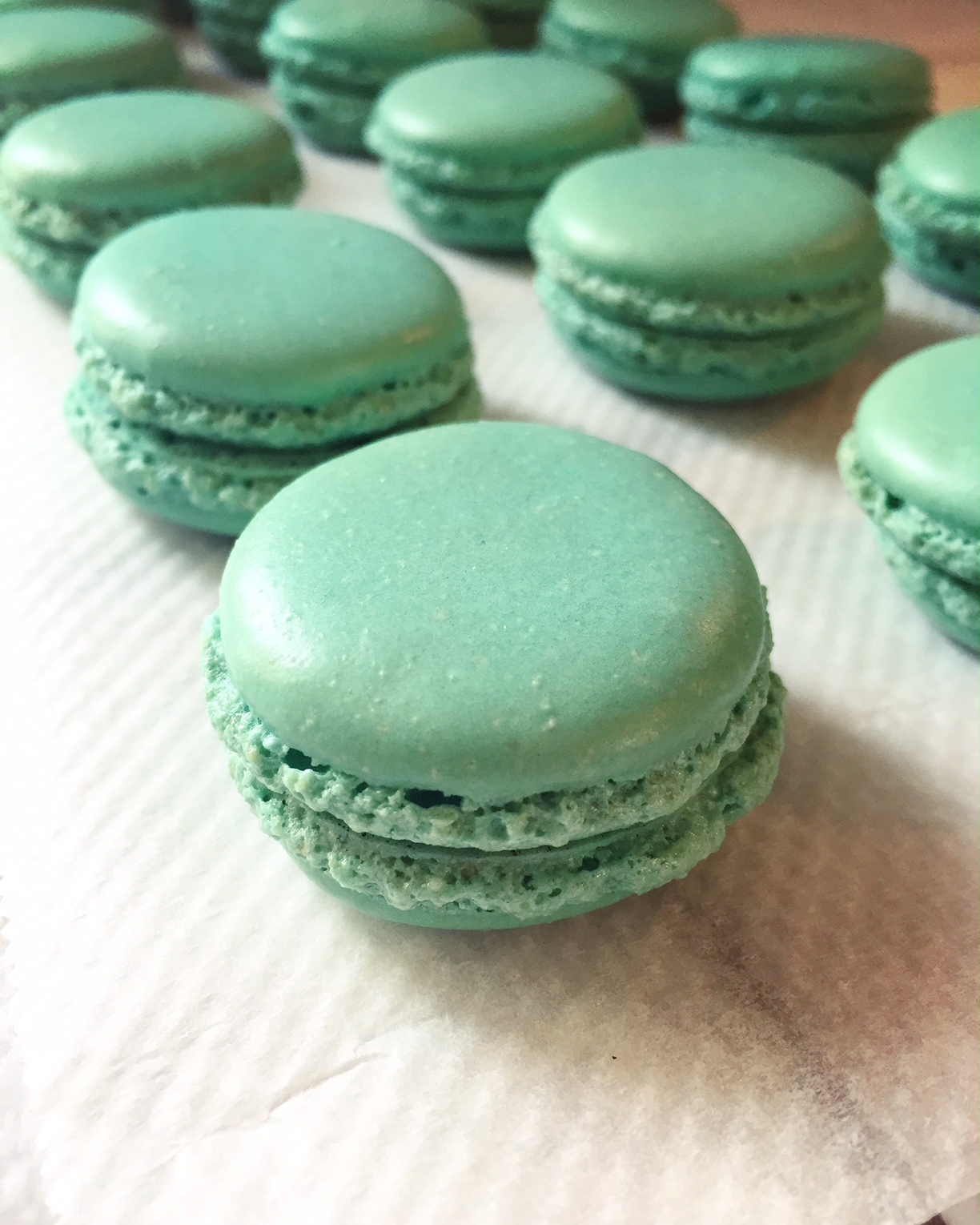 Voilà bien trop longtemps que je n’avais pas pris quelques heures de mon dimanche pour préparer des macarons! Recemment au travail j’ai subit une forte période de harcèlement… aux macarons. Terrible, pas une journée sans qu’on m’en réclame une petite fournée. Il faut dire qu’avec les entrainements pour le CAP de l’an dernier, je les avais habitués aux petites gourmandises post journées de repos. (les macarons n’étant pas au programme, c’est tout de même ce qu’ils ont surtout retenus !).