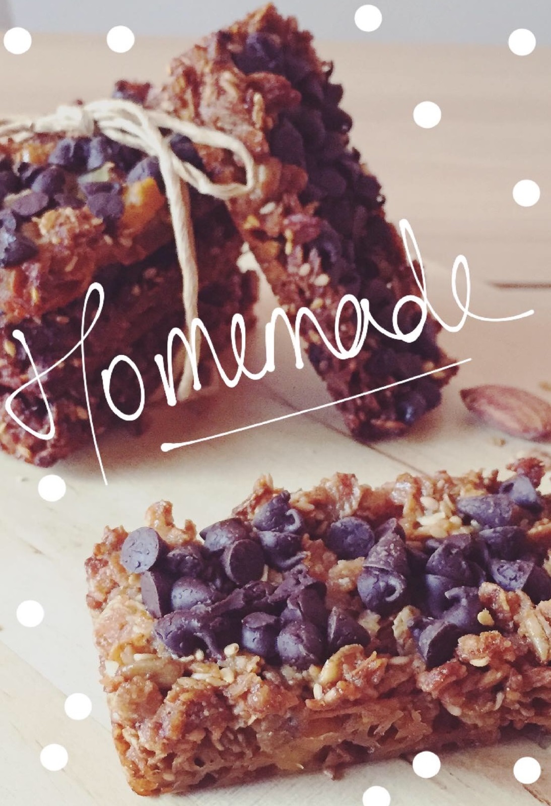 – Déposer quelques pépites de chocolat en les écrasant un peu afin qu’elles adhèrent au barres.