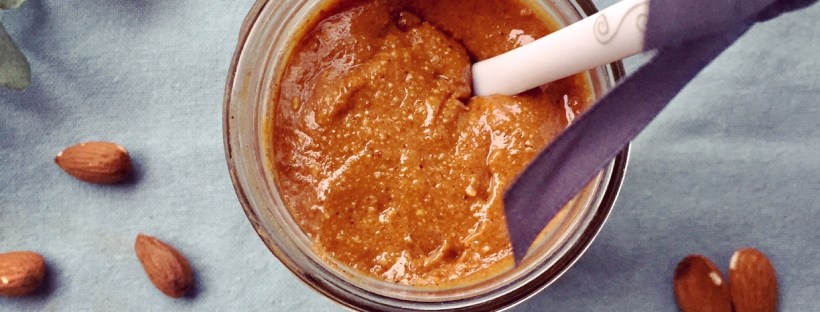 Composée d’amandes, de noisettes ou d’un tant pout tant (amandes/noisettes), selon vos gôuts et ce dont vous disposez dans votre placard, ela pâte de praliné est très facile à réaliser, avec toutefois l’aide indispensable d’un bon mixeur (ou blender).