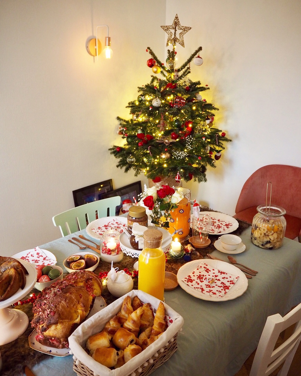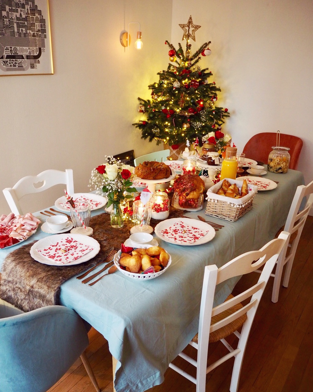 Le fait est que malgré un emploi du temps plutôt chargé, j’ai tout donné afin d’être prête pour la nouvelle tradition familiale, le Brunch de Noël, chez moi, le week end de l’avent! Depuis que j’habite l’appartement de mes rêves, (ou presque) je me fais une joie de le décorer à ma façon et de recevoir ma famille le premier dimanche de Décembre. L’occasion de les chouchouter et de les « gaver » de bonnes choses faites maison! Le but est simple, que la table soit jolie et que l’on passe un bon moment à manger, jouer, se plaindre du travail et de la politique en écoutant Michael Bubblé ! Ensuite c’est doggy bag pour les collègues et diet jusqu’à Noël… si si je vous jure !