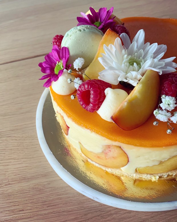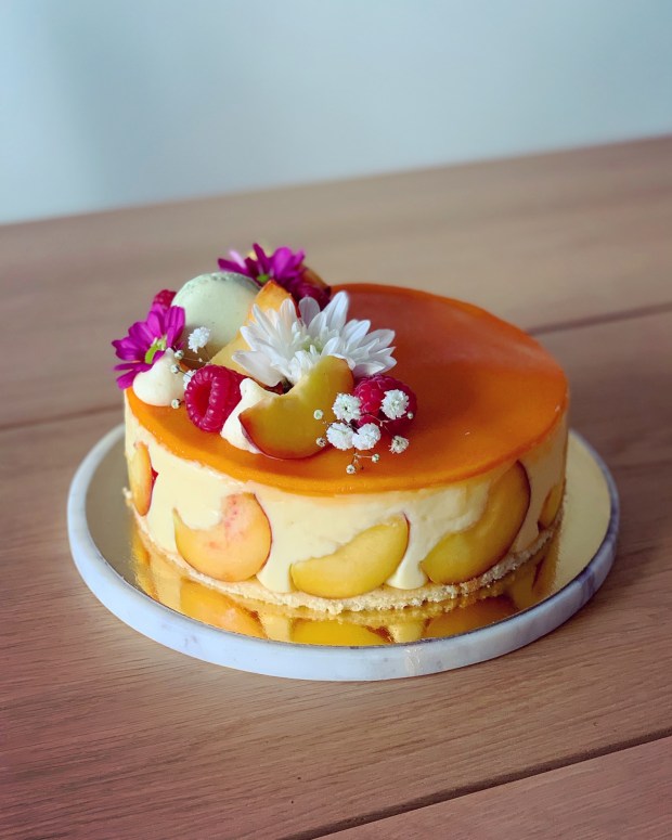 Toujours plus créative que jamais, (…) je suis venue vous présenter… LE PECHER ! Ou la version du fraisier avec des pêches ! Tu l’avais pas venue venir celle-là hein ?