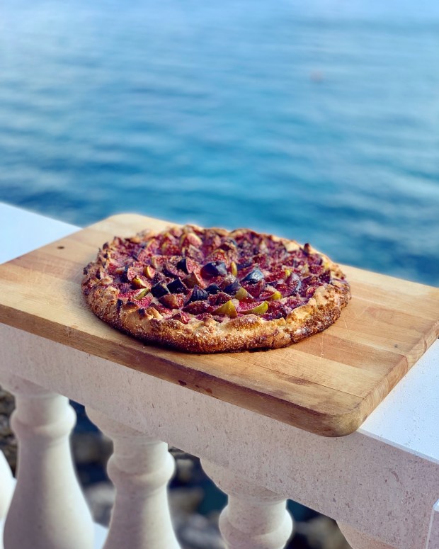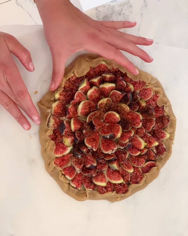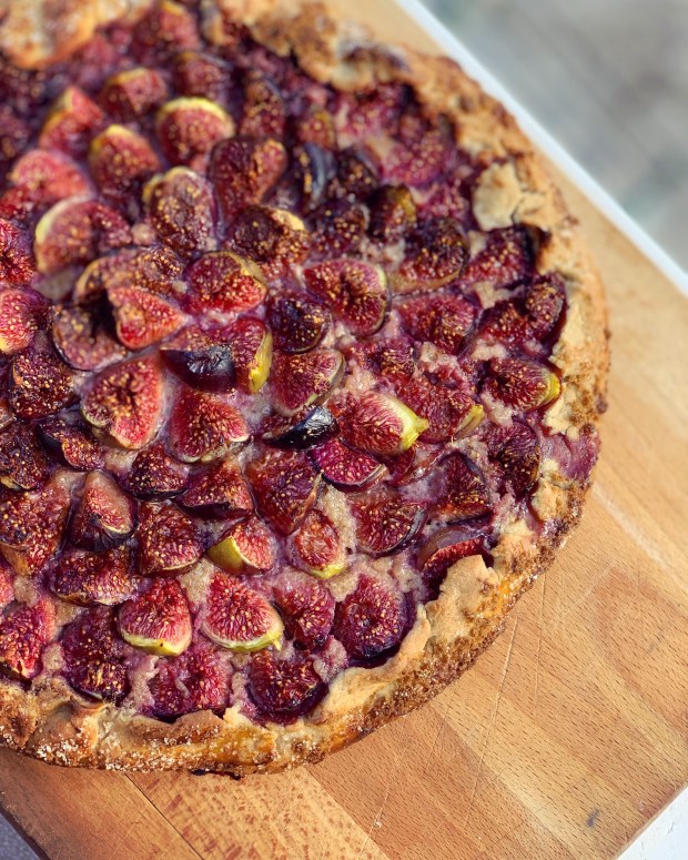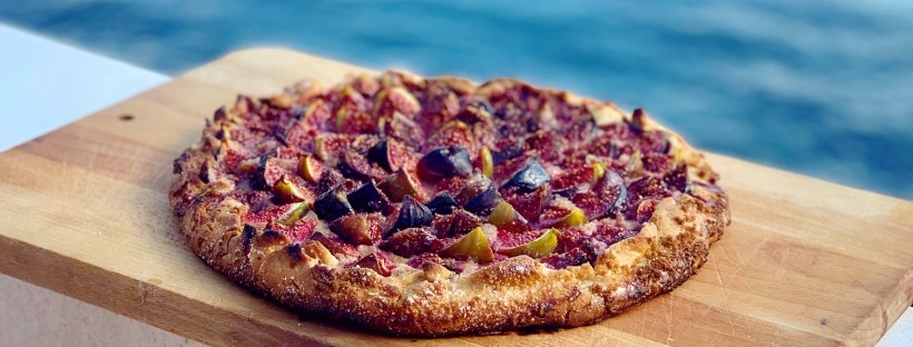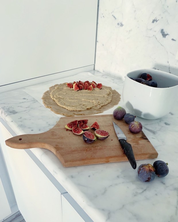 Je ne pouvais pas ne pas salir cette cuisine parfaite et imaculée, alors des moyens du bord est née une tarte rustique Figues et Noix. Nouvelle recette dans ma collection.