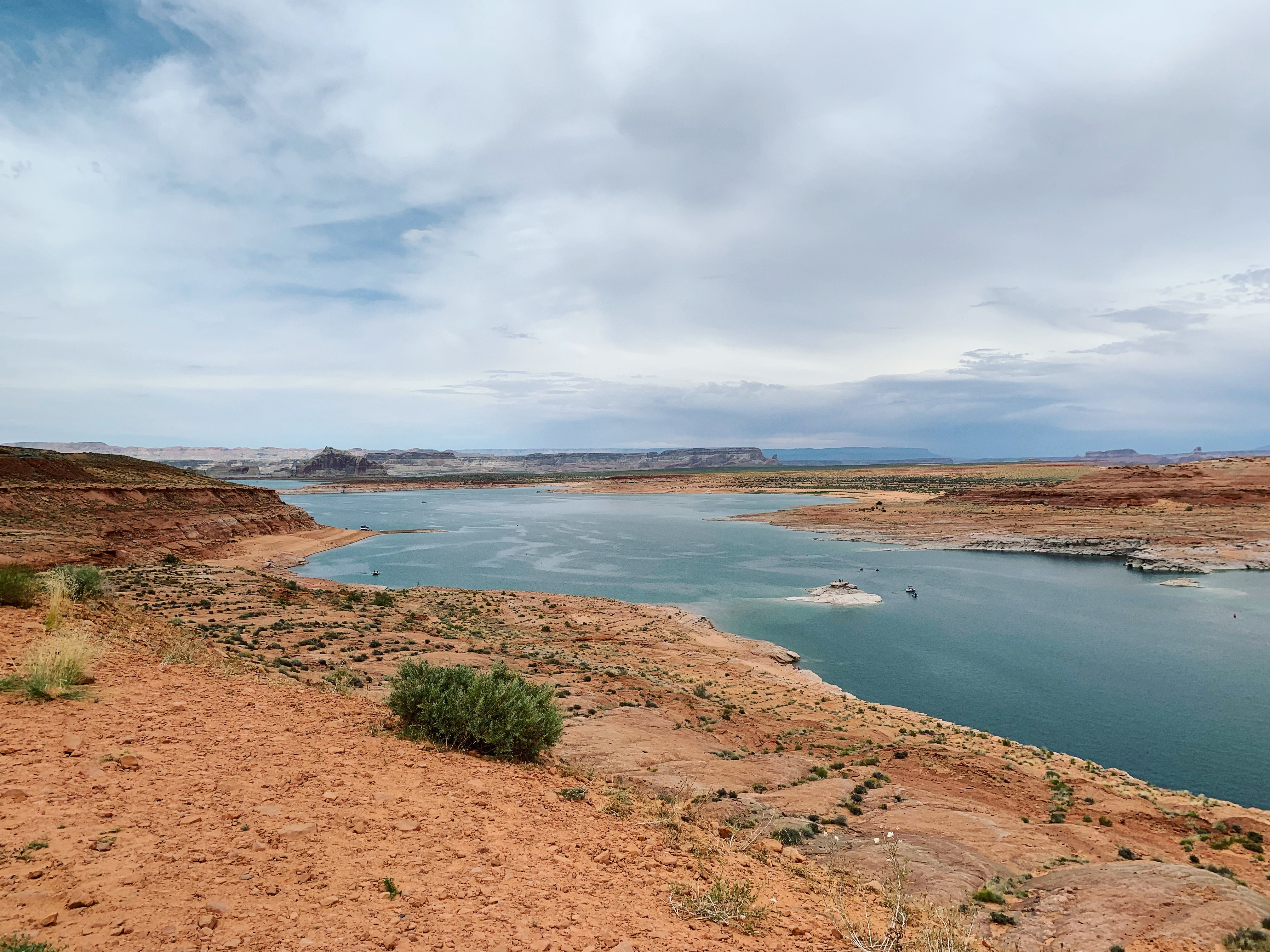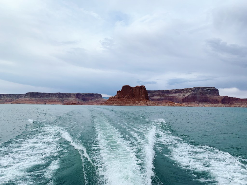 Le lake Powell est un lac artificiel créé sur le Colorado grâce à un barrage, il se situe sur l’Utah et l’Arizona et il est réputé par sa couleur bleue magnifique. Le temps étant très orageux , le bleu n’en n’était que plus incroyable!