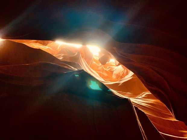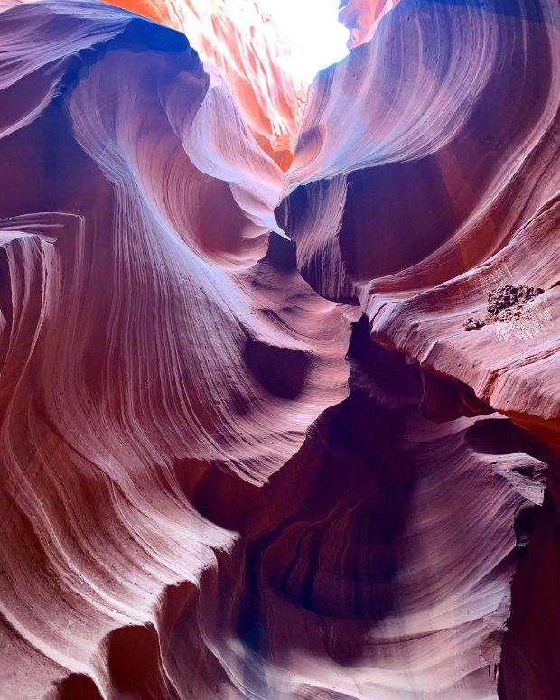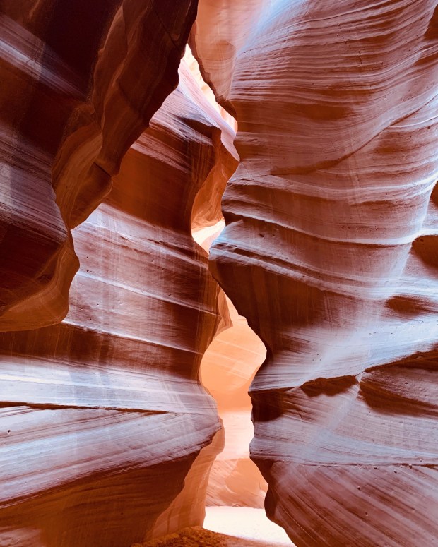 Nous avons choisi de visiter le Upper (sachant que des gens sont déjà morts dans le Lower en tant d’orage, ça me disait rien tu vois..!), nous avons réservés tard sur Navajo Antelope Canyon et avons eu de la chance d’avoir une visite sur le temps de midi en nous pointant « sans faire exprès » deux heures en avance. Le soleil était caché donc heureusement pour nous sinon cela aurait été bien sombre.