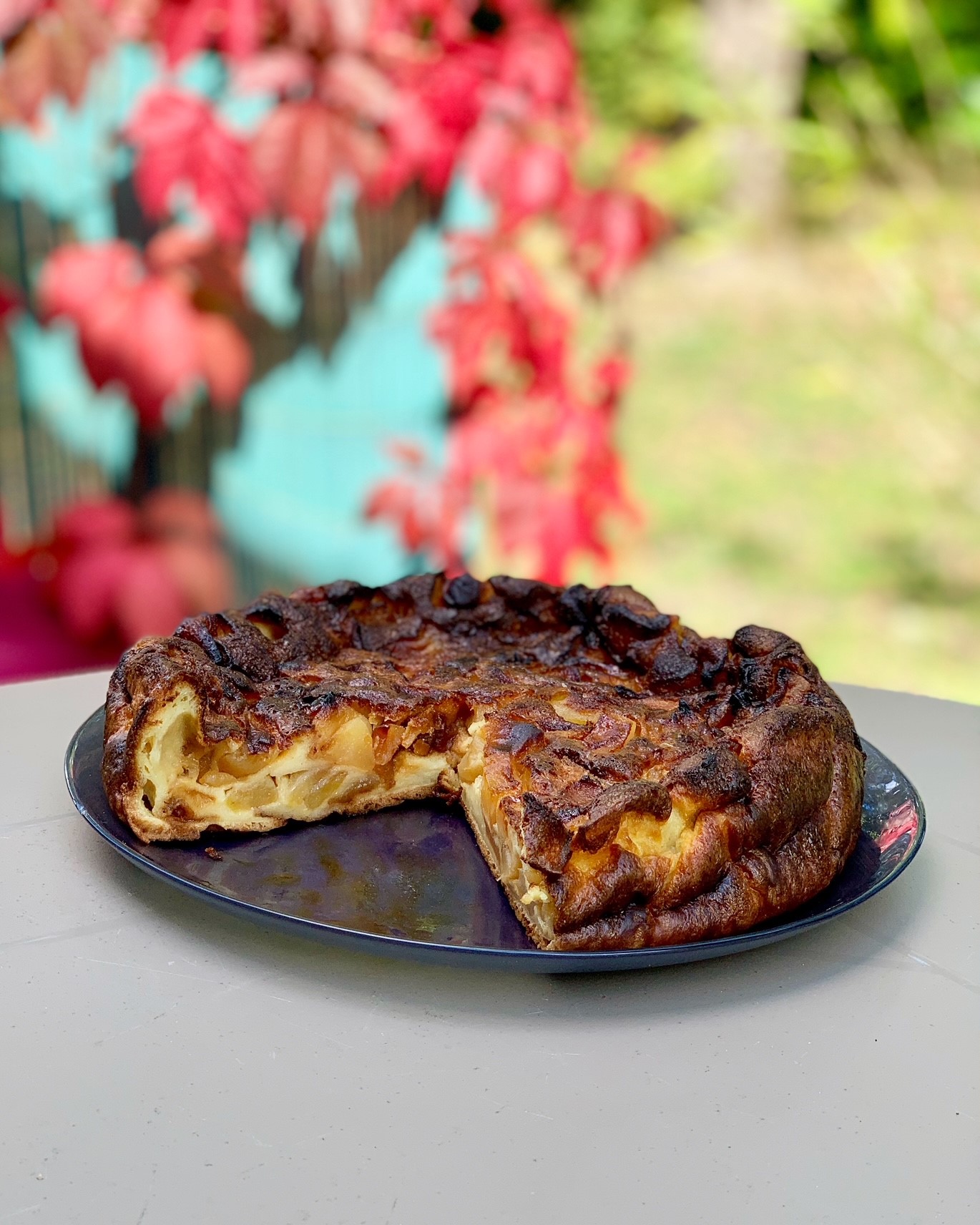 Ma chère Mamie Dany, avec qui je passe quelques jours, vient de me faire découvrir la Flognarde aux pommes. Un gateau bien gourmand qui ressemble un peu à un flan mais avec le goût de tarte tatin.