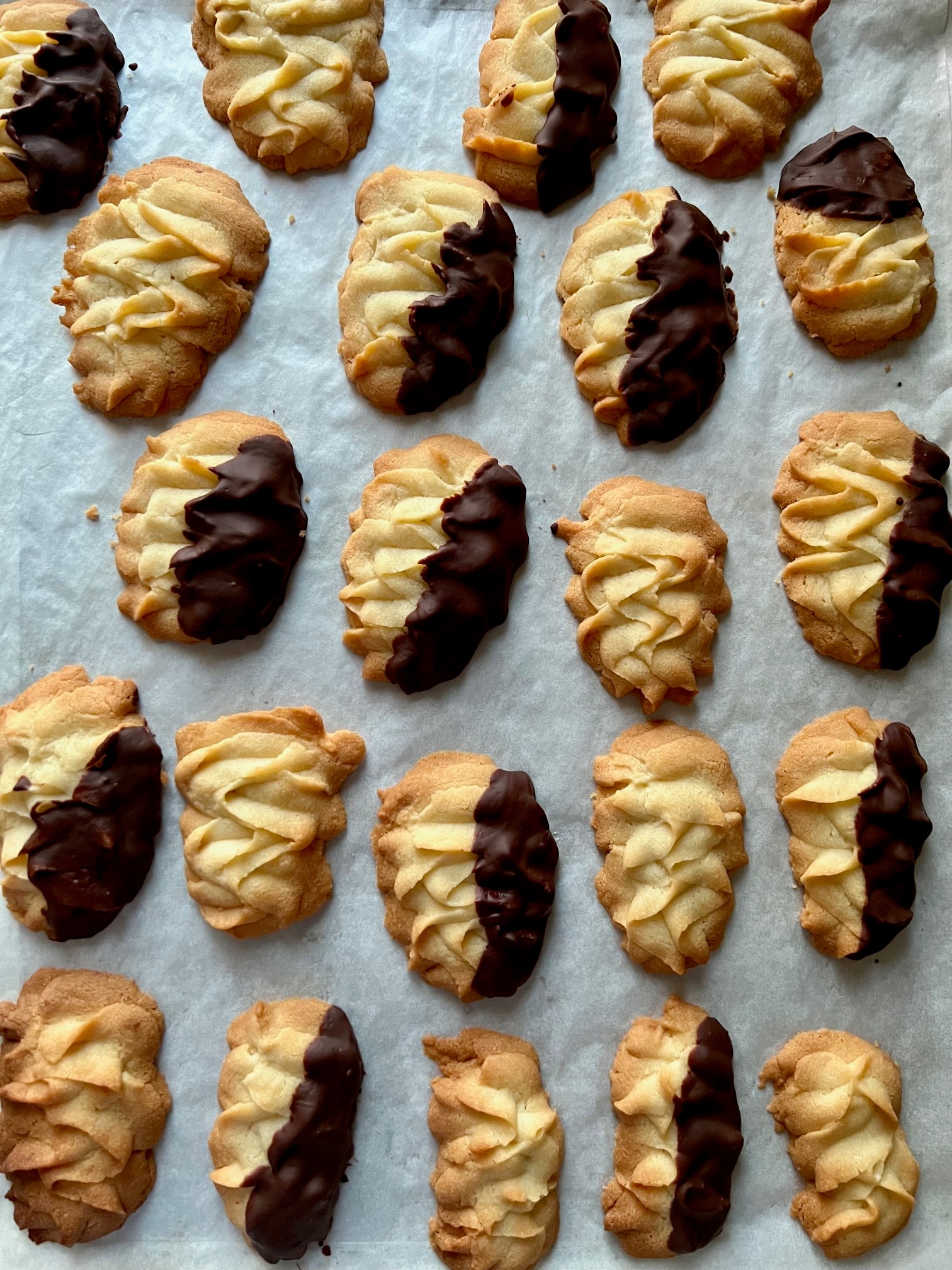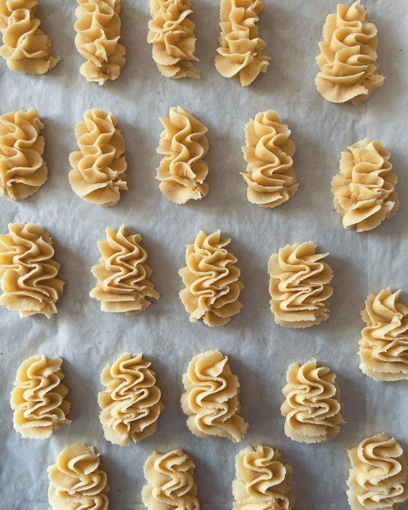 Il est temps de vous donner une recette de biscuits classique, que l’on connait tous et surtout délicieuse ! Les spritz. Ces petits biscuits en forme de S, généreux en beurre et qui fondent dans la bouche. Ce ne sont absolument pas des biscuits de Noël, alors lache toi, fais toi plaisir, fait péter les calories baby !